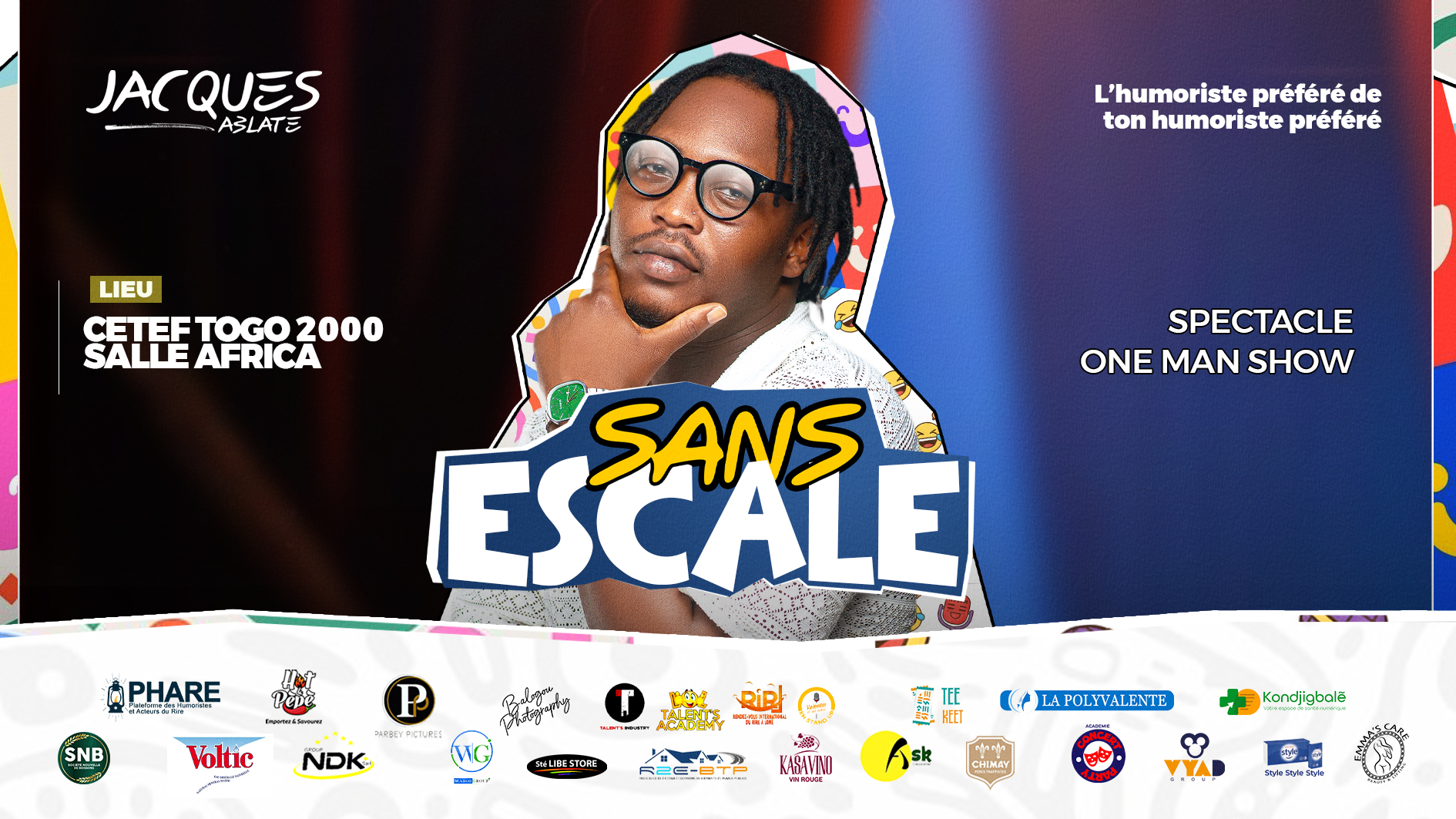 Préparez-vous pour une soirée de rires ininterrompus avec Sans Escale, le nouveau one man show explosif de l’humoriste togolais Jacques Ablaté.